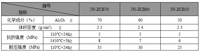 · JN系列中間包永久層澆注料主要理化指標(biāo) ·